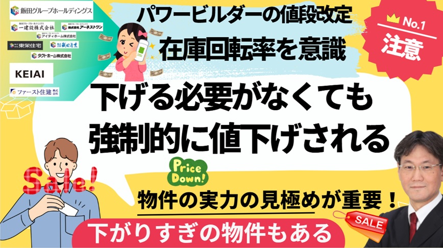 飯田グループのようなパワービルダーはそもそもなぜ、強制的に値段を改定し、下げていくのかというう根本的な理由をまず知っておく必要があります。理由とすると規模の経済を生かし、優位性を持ちポジションを取るために、在庫回転率を重視しているためです。売り出し価格といつ値段改定されたのかを把握していないと、ピント外れな商談になります。