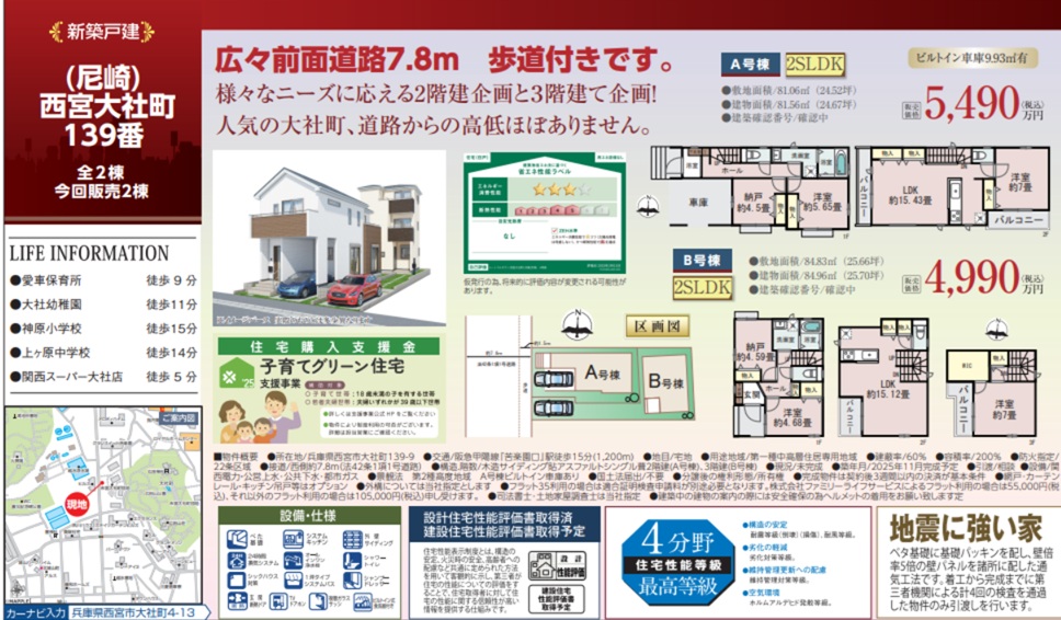 - ハートフルタウン西宮市大社町2区画新築一戸建