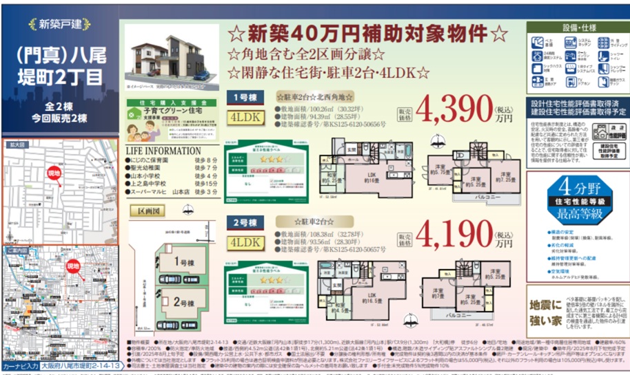 - ハートフルタウン八尾市堤町2区画新築一戸建