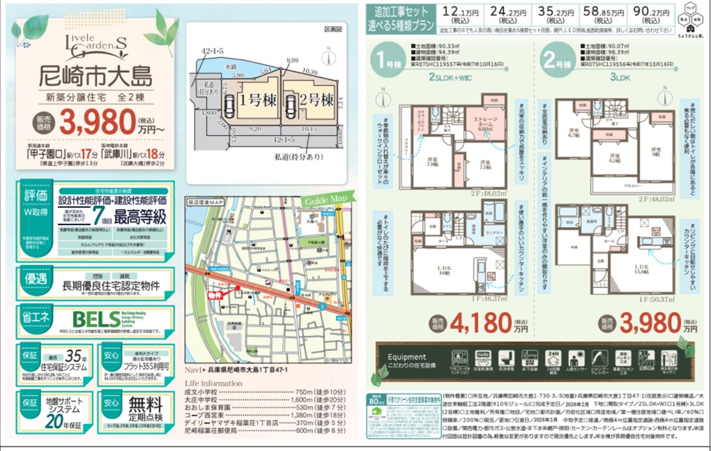 - リーブルガーデン尼崎市大島2区画新築一戸建