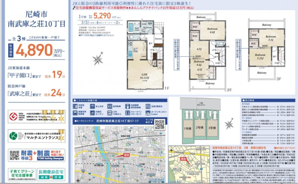 - ファーストタウン尼崎市南武庫之荘14期新築一戸建て3区画